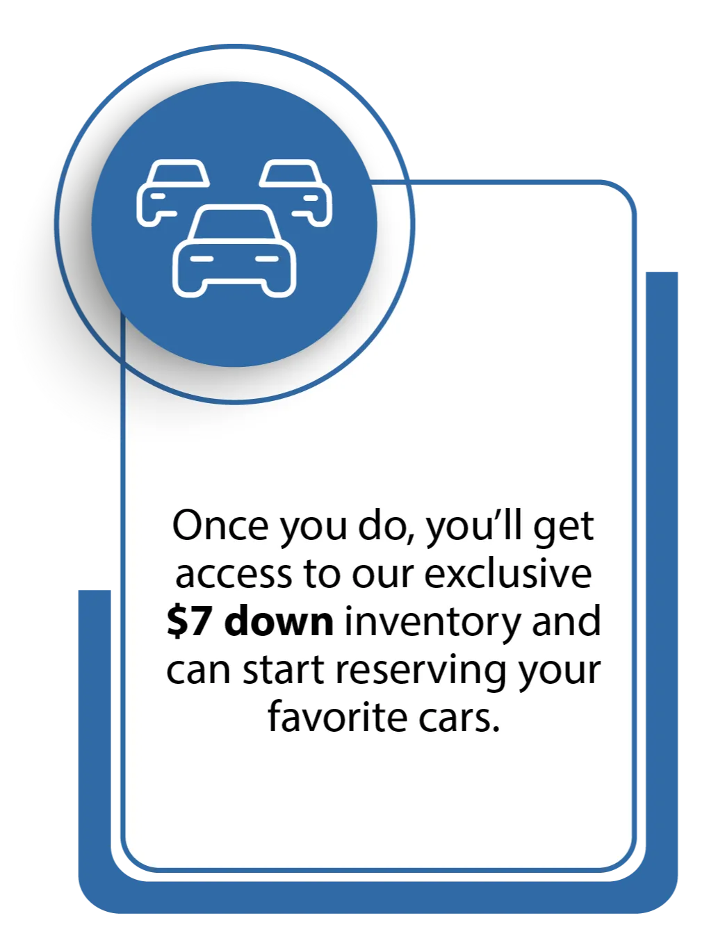 Get early access to our exclusive inventory and lock in your dream car before you even step foot in the dealership. No gimmicks—just great cars, and you could drive one home for just $7 down!